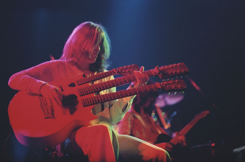 Meanwhile, the electric 12-string continued making its presence known in increasingly dramatic fashion. Perhaps the most famous use of the instrument came when Jimmy Page played one on Led Zeppelin’s anthemic tour-de-force, “Stairway to Heaven.” Because the piece required him to play both 6-string and 12-string guitar in different sections, he had a custom double-necked guitar built that made it much easier in concert to switch back and forth between the two in mid-song. Not to be outdone, Zeppelin bandmate John Paul Jones commissioned a special triple-necked acoustic guitar that included 6-string, 12-string and mandolin, which was perfect for the group’s acoustic sets on tour.
