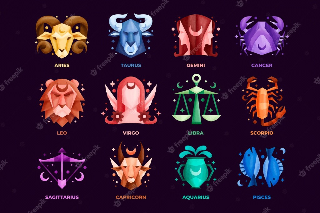 “Capricorn, Scorpio, /Taurus, Gemini, Virgo, Cancer, /Pisces, Leo, Libra, Aries, /Aquarius, Sagittarius… /No matter what sign you are, /You’re gonna be mine, /Can’t let astrology chart our destiny…”