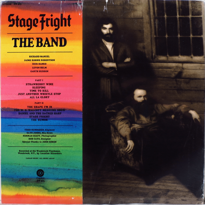 The Band’s first two LPs had been rapturously received and the third one, 1970’s “Stage Fright,” continued their musical journey but with songs that took a darker turn. As the name implies, the title track is about “the terror of performing,” according to drummer/singer Levon Helm, and was written by Robbie Robertson’s anxiety about The Band’s first live show under that name in 1969: “See the man with the stage fright, just standin’ up there to give it all his might, /He got caught in the spotlight, but when we get to the end, he wants to start all over again, /Now if he says that he’s afraid, take him at his word…” In a more general sense, the lyrics also allude to the pitfalls of fortune and fame, which profoundly affected The Band in terms of interpersonal relationships and substance abuse.