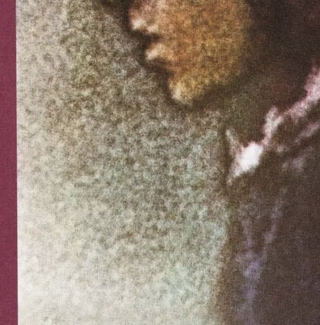 While the album cover image of Dylan here looks like a painting, it is in fact a photograph of the artist taken with a telephoto lens at a concert in 1974 by Paul Till. When developing the film, Till solarized it to achieve the effect of tone reversal, and then hand-colored it using watercolors. Ron Coro, art director at Columbia Records, later retouched Dylan’s profile features for better clarity. It’s one of the more enigmatic cover depictions of Dylan’s image in his 40-album repertoire, and quite fitting for the autobiographical songs that are found on “Blood on the Tracks,” released in January 1975.