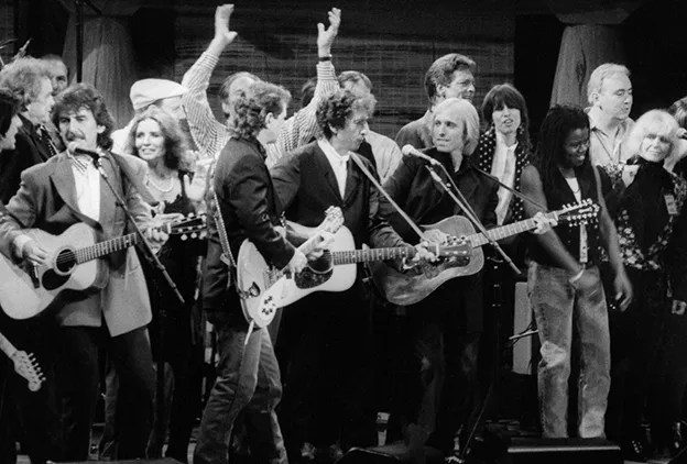 “My Back Pages,” Bob Dylan with Roger McGuinn, Tom Petty, Neil Young, Eric Clapton, George Harrison, 1992/1993