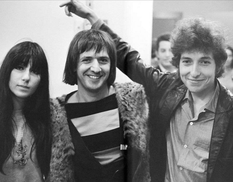 Sonny & Cher backstage with Bob Dylan in Los Angeles, 1965