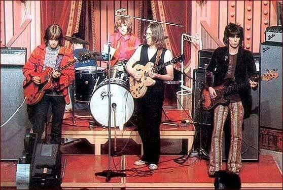 A one-off performance by The Dirty Mac (Eric Clapton, Mitch Mitchell, John Lennon and Keith Richards) for The Rolling Stones’ “Rock ‘n Roll Circus” film, 1968.