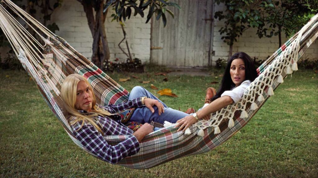 Gregg Allman and Cher relax in a back yard in Macon, Georgia, 1975